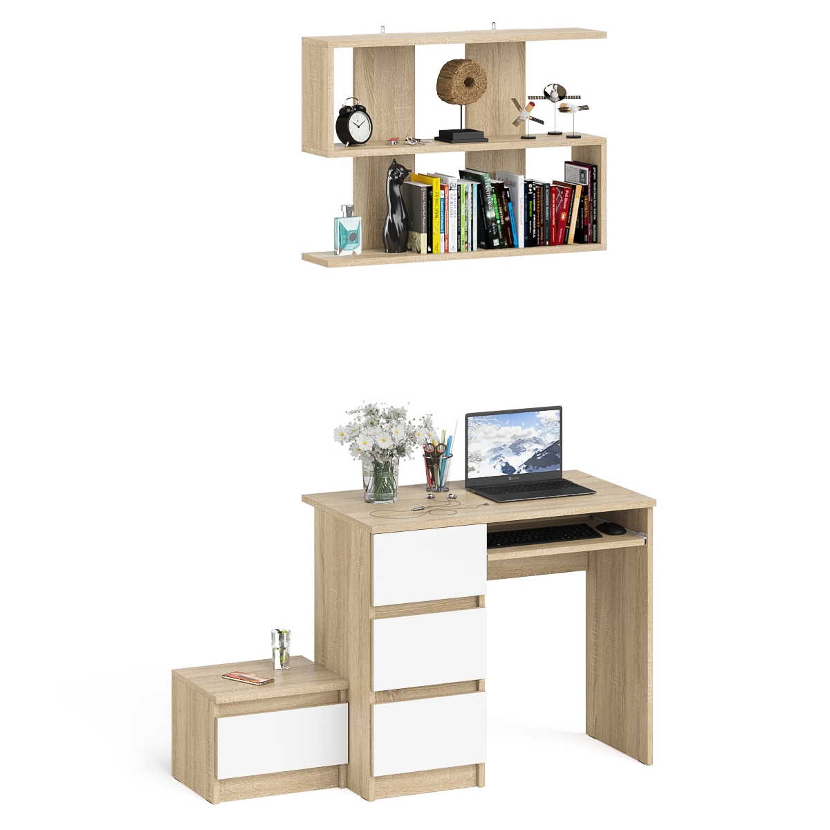 Отзывы о Столплит Стол компьютерный три ящика МС-6 левый с тумбочкой ТМП400 и навесной полкой 900 Мори Дуб сонома светлый/Белый