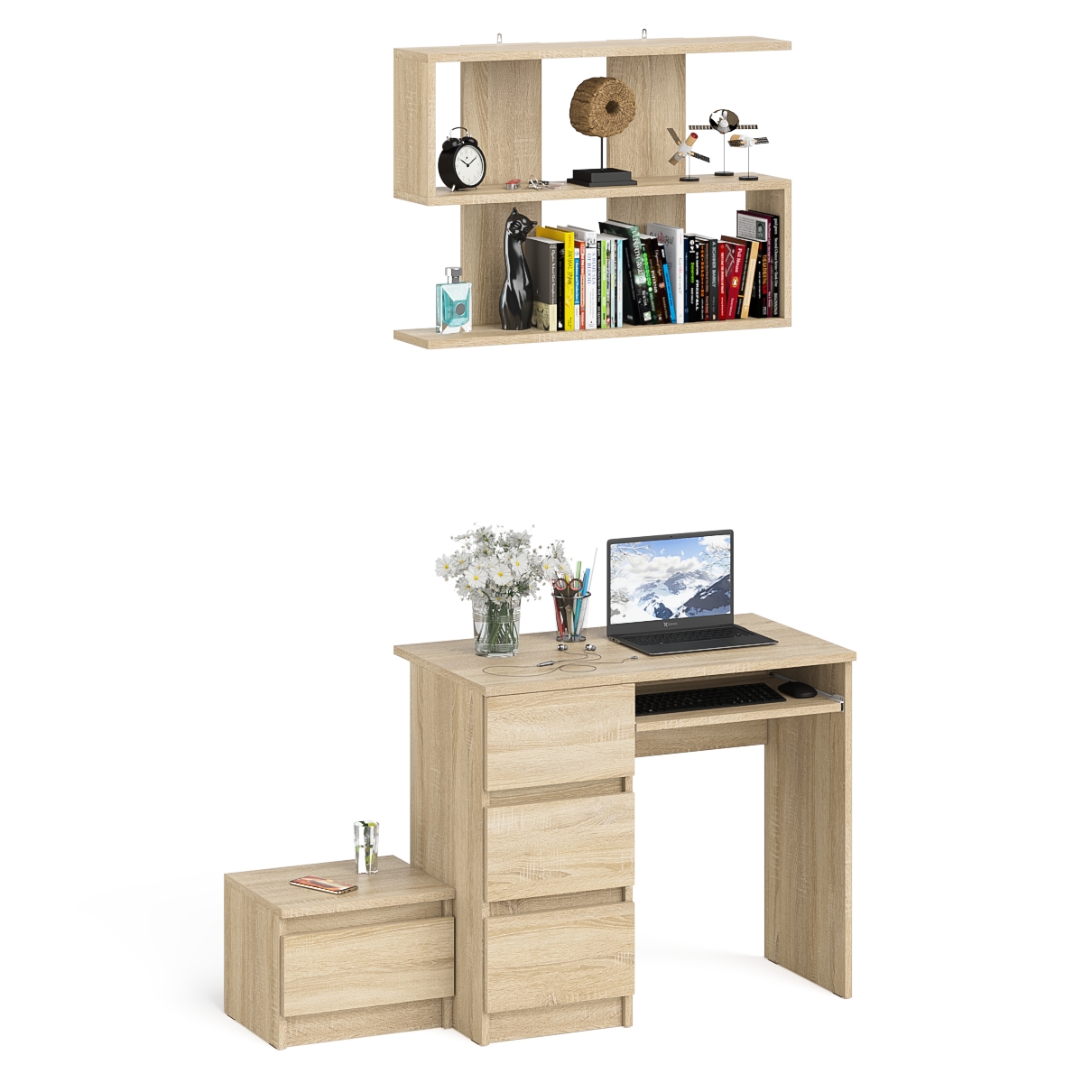 Отзывы о Столплит Стол компьютерный три ящика МС-6 левый с тумбочкой ТМП400 и навесной полкой 900 Мори Дуб Сонома