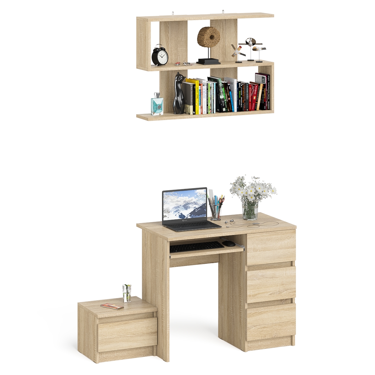 Компьютерный стол Мори МС-6 ящики справа с навесной полкой 900 и тумбой с ящиком - минималистичный дизайн и доступная цена позволяет наслаждаться качественной и современной мебелью без значительных финансовых затрат!