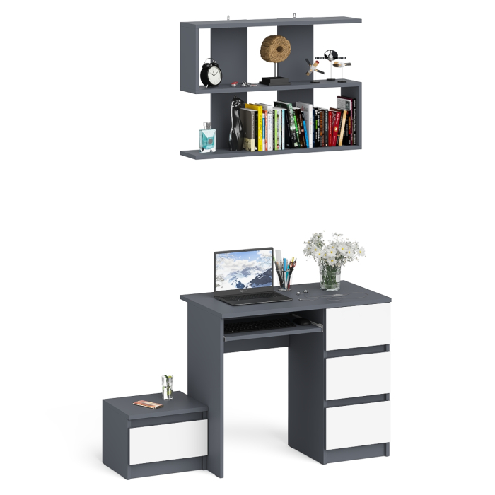 Компьютерный стол Мори МС-6 ящики справа с навесной полкой 900 и тумбой с ящиком - минималистичный дизайн и доступная цена позволяет наслаждаться качественной и современной мебелью без значительных финансовых затрат!
