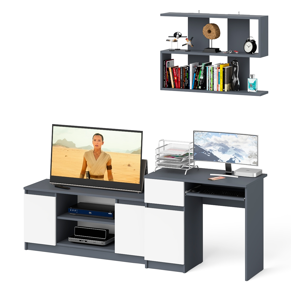Комплектация включает стол компьютерный Мори МС-1 левый, тумбу ТВ Мори МТВ1200.1 и навесную полку Плк-900. Отсутствие ручек главное преимущество данной модели. Роль ручек выполняют сами фасады.