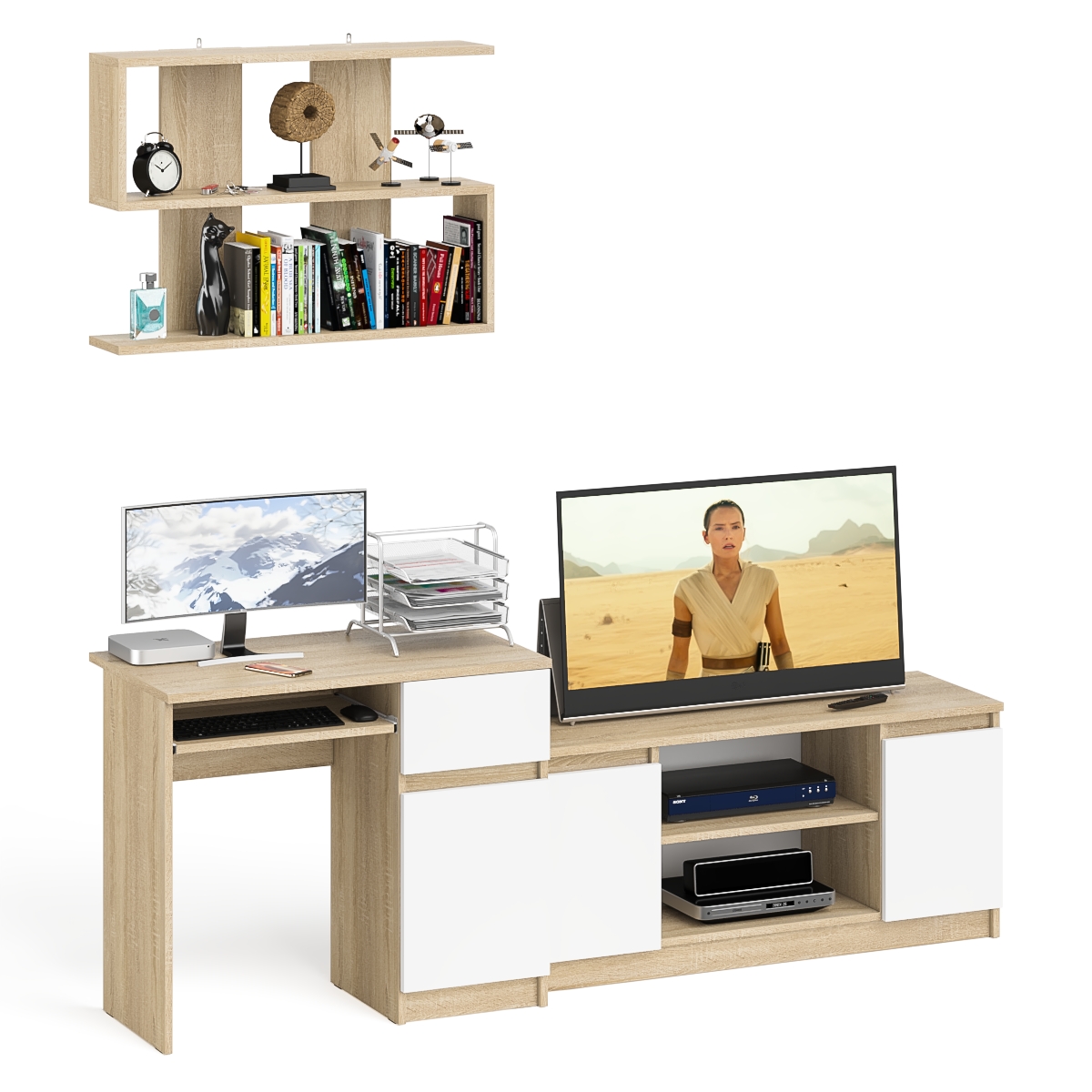 Выполнено в 5 цветах: белый, графит, графит/белый, дуб сонома и дуб сонома/белый.