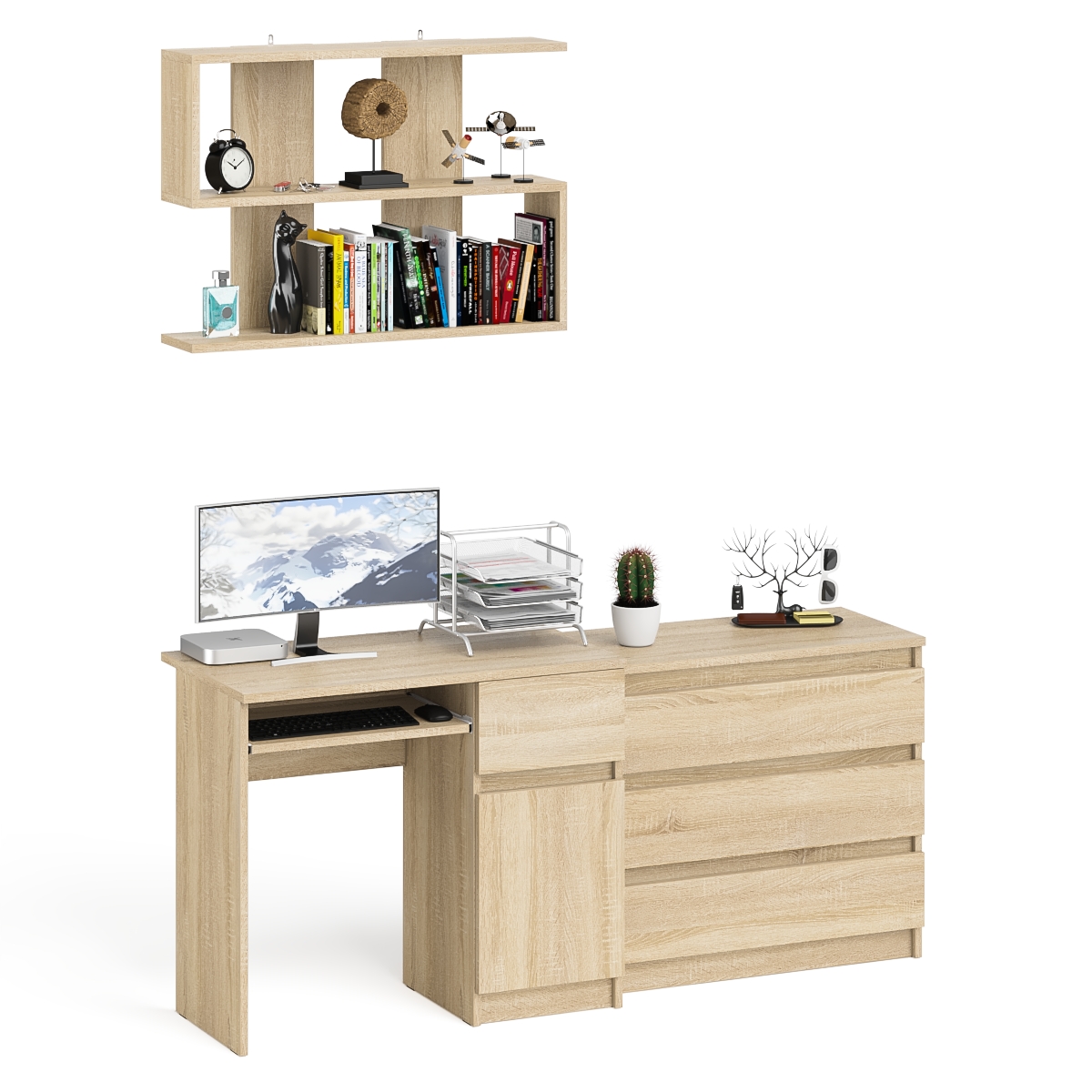 Отзывы о Столплит Комод три ящика МК800.1 с компьютерным столом Мори МС-1 правый и навесной полкой 900 Дуб Сонома