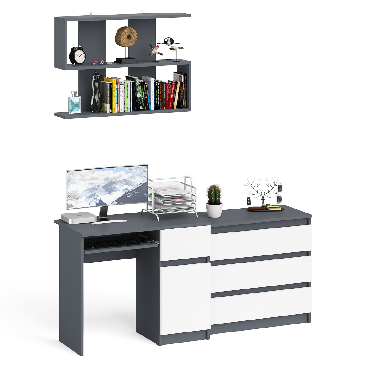 Отзывы о Столплит Комод три ящика МК800.1 с компьютерным столом Мори МС-1 правый и навесной полкой 900 Графит/Белый