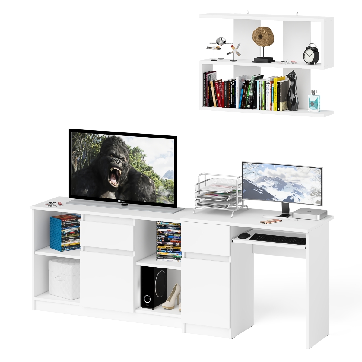 Тумба для техники МТВ1204.1 с компьютерным столом Мори МС-1 левым и полкой навесной - минималистичный дизайн и доступная цена позволяет наслаждаться качественной и современной мебелью без значительных финансовых затрат!