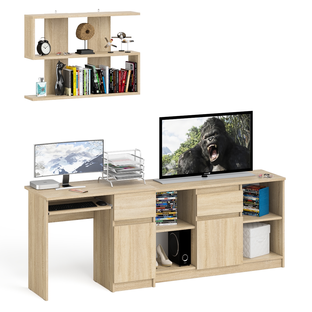 Отзывы о Столплит Открытая полка Мори 900 с компьютерным столом МС-1 правый и тумбой 1204-1 Дуб Сонома