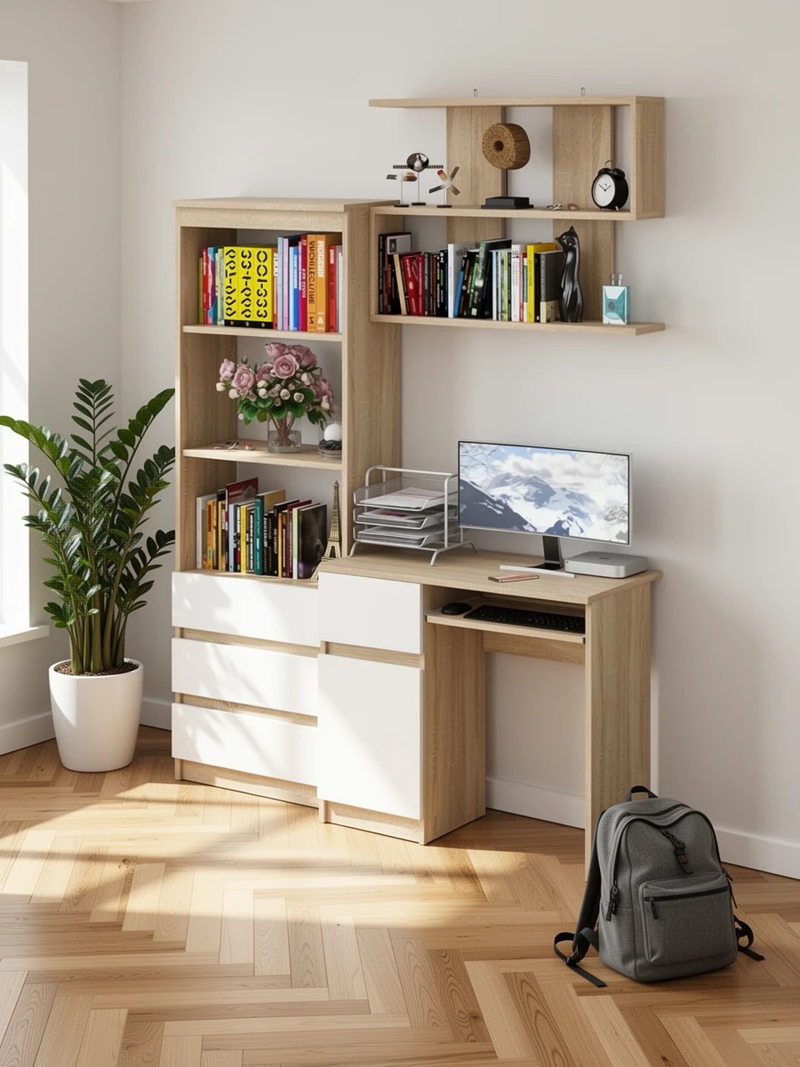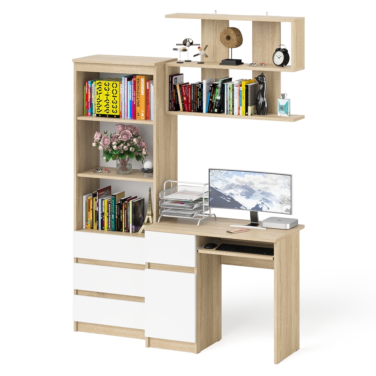 Отзывы о Столплит Рабочее место из стола компьютерного МС-1 левый со стеллажоми и настенной полкой Мори Дуб сонома светлый/Белый
