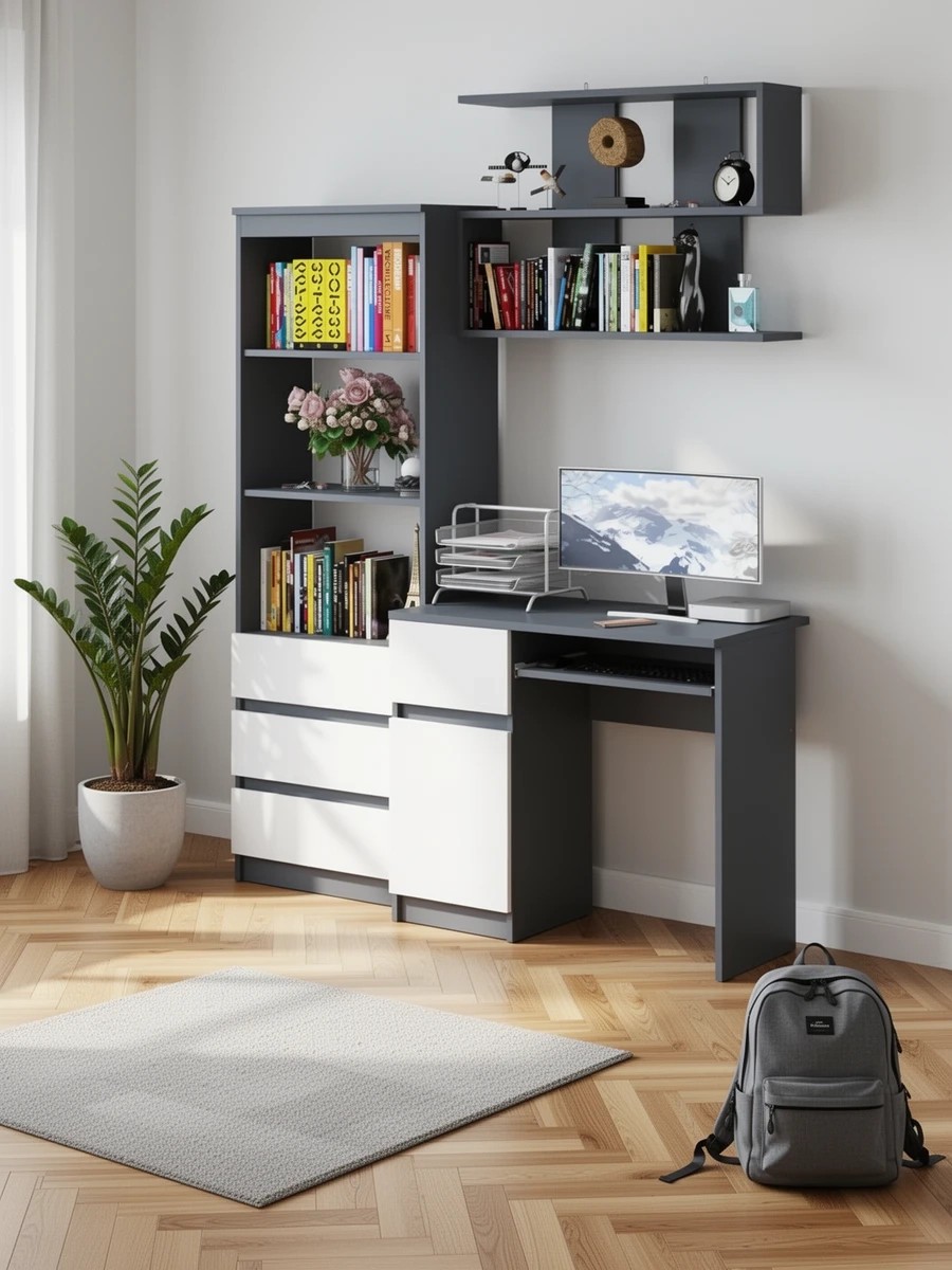Выполнено в 5 цветах: белый, графит, графит/белый, дуб сонома и дуб сонома/белый.