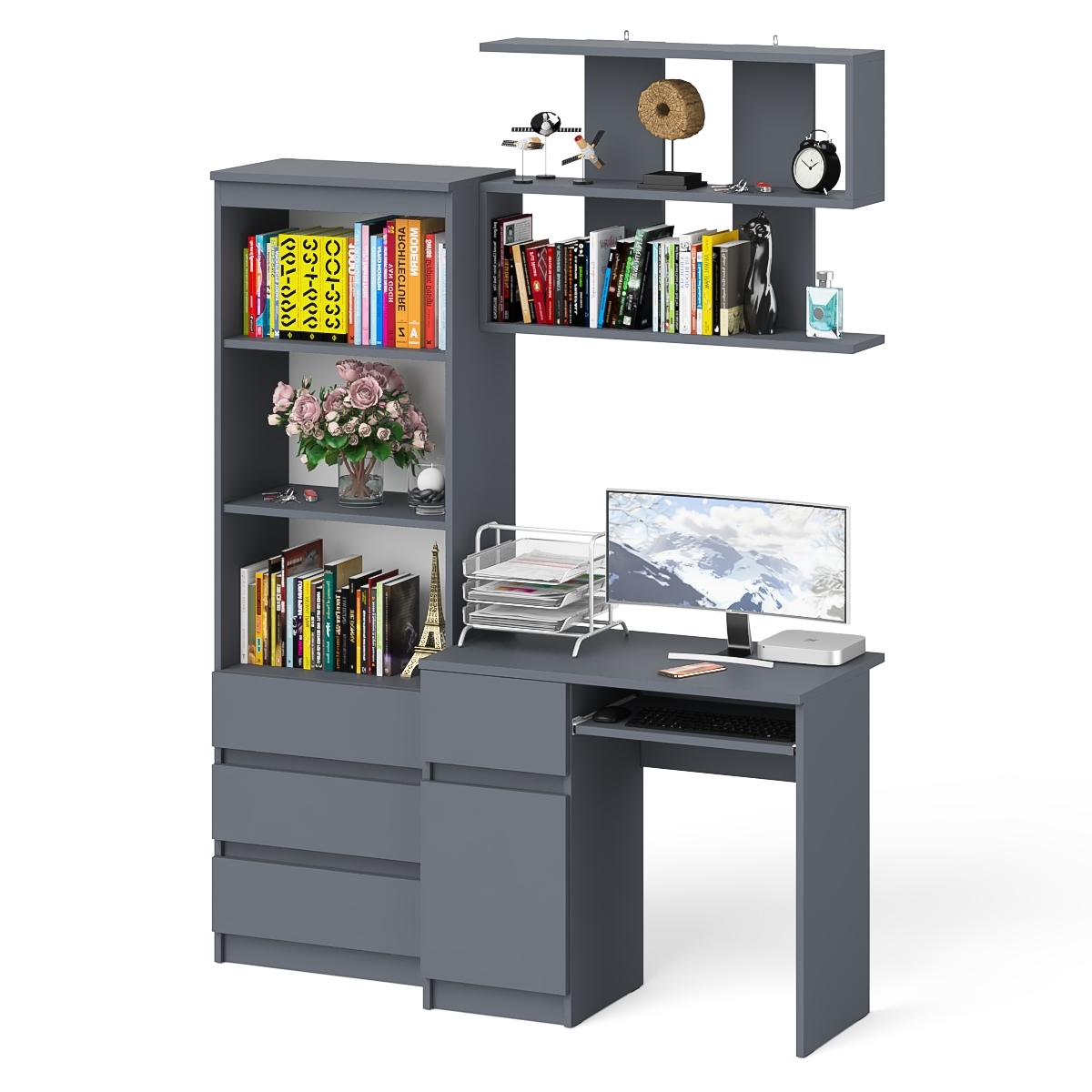 Рабочее место из стола компьютерного МС-1 левый со стеллажоми и настенной полкой Мори (Графит) Код I0000400480