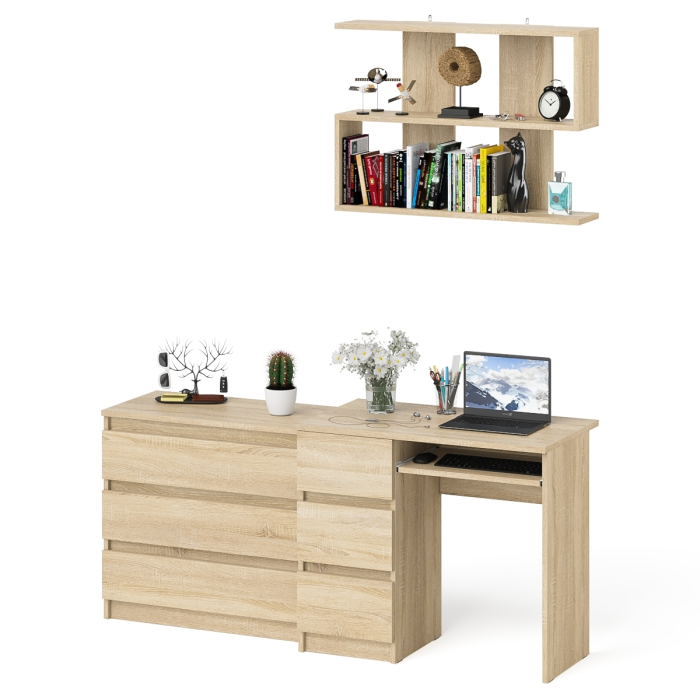 Отзывы о Столплит Компьютерный стол три ящика слева Мори с комодом Мори МК800.1 и полкой на 900 Дуб Сонома