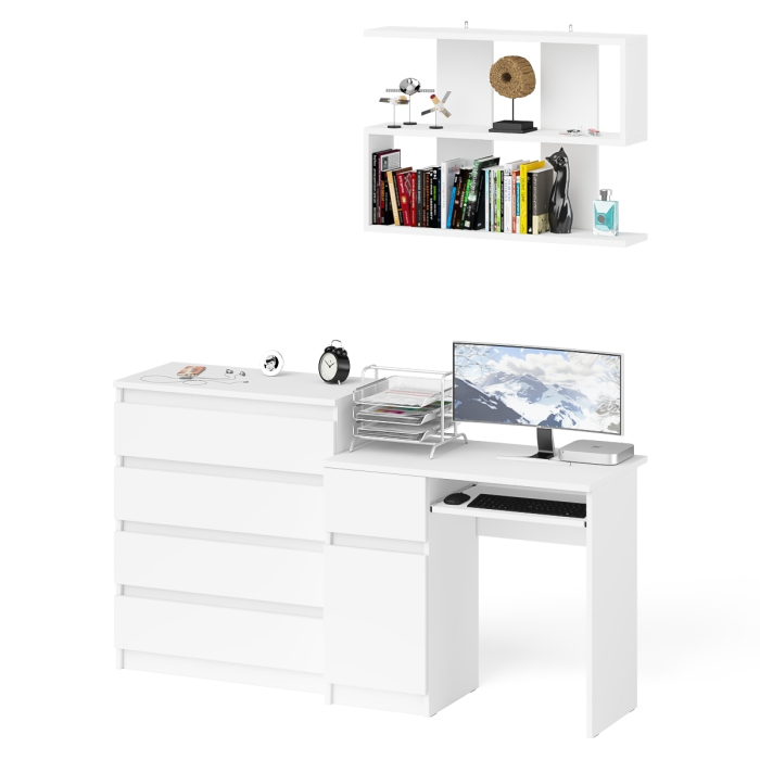 Отзывы о Столплит Комод четыре ящика Мори 800-4 со столом компьютерным с тумбой слева и полкой 900 Белый