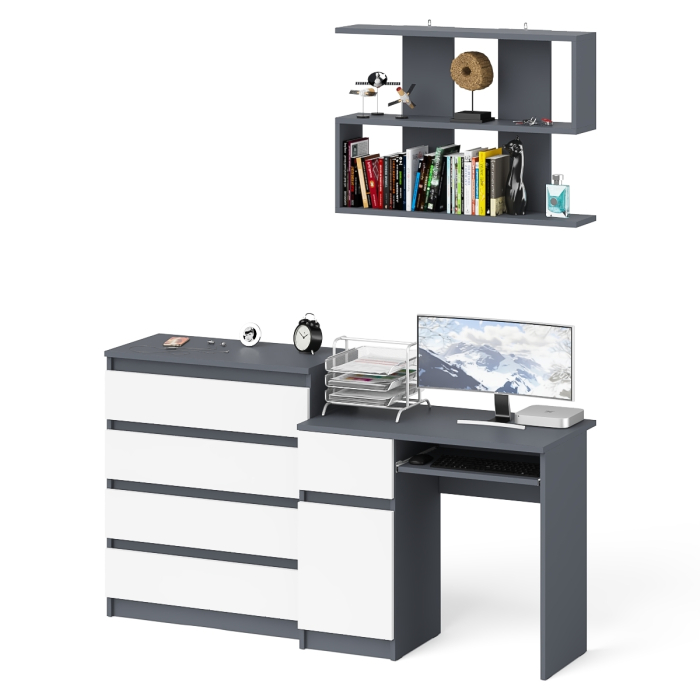 Отзывы о Столплит Комод четыре ящика Мори 800-4 со столом компьютерным с тумбой слева и полкой 900 Графит/Белый