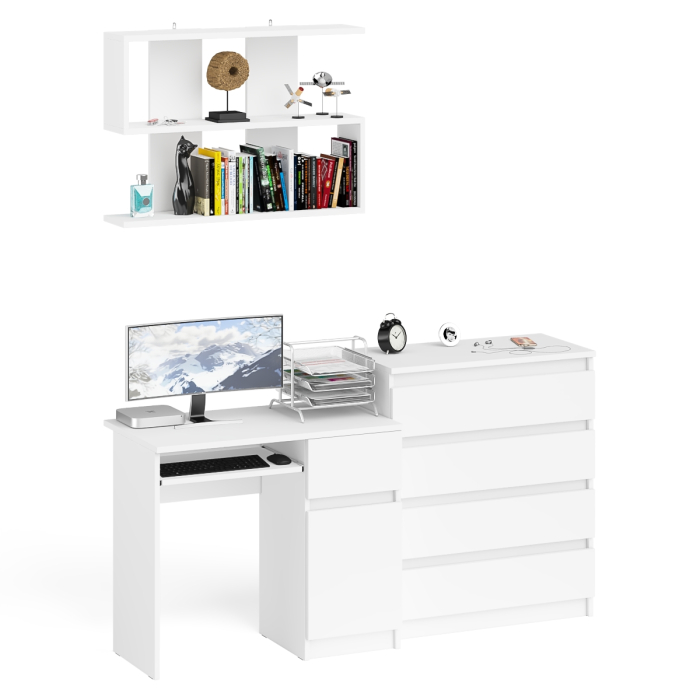 Отзывы о Столплит Комод Мори четыре ящика на 800 с компьютерным однотумбовым столом МС-1 правый и навесной полкой Белый