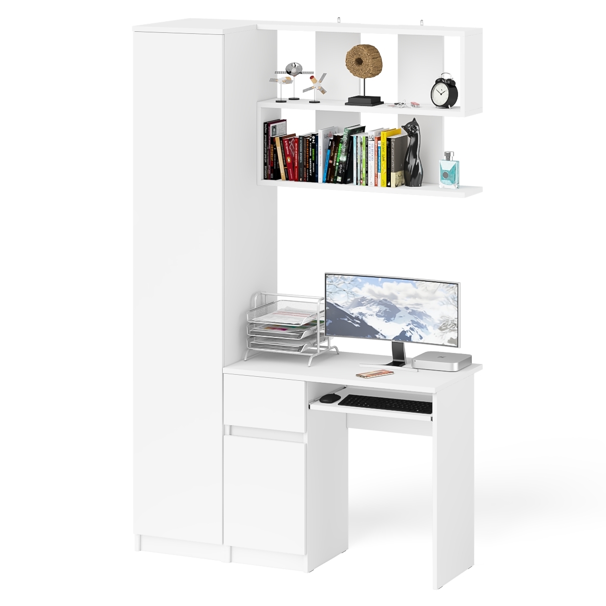 Пенал с дверкой Мори МШ400-1 с компьютерным столом МС-1 левый и открытой полкой на 900 (Белый) Код I0000400521
