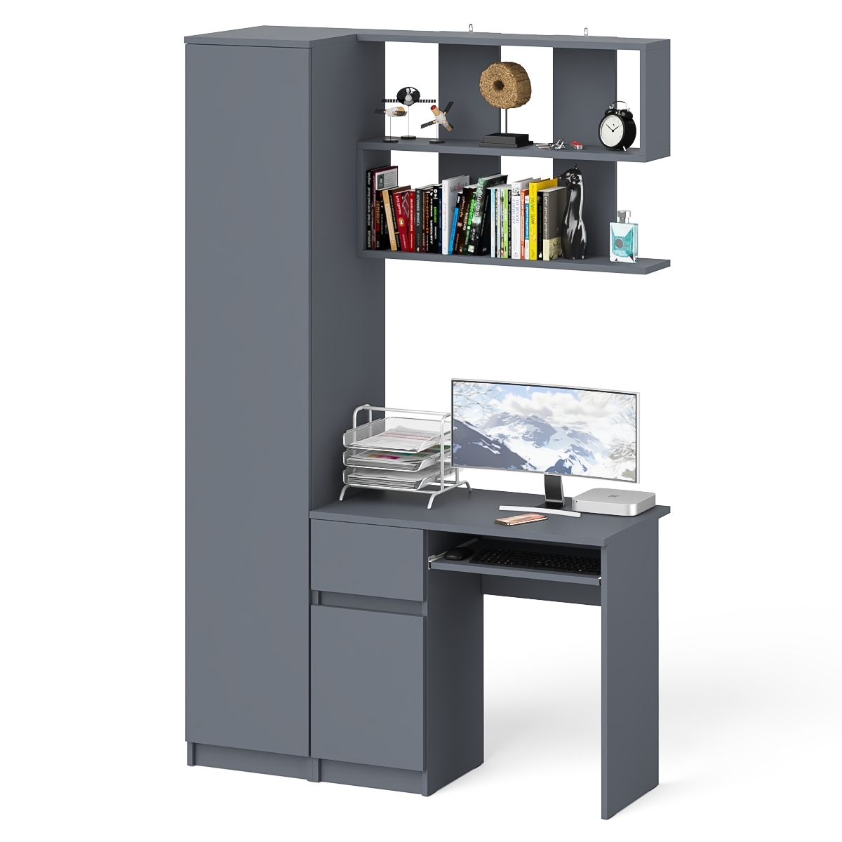 Отзывы о Столплит Пенал с дверкой Мори МШ400-1 с компьютерным столом МС-1 левый и открытой полкой на 900 Графит