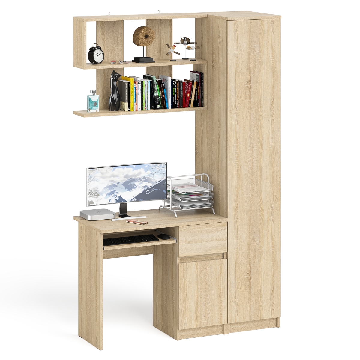 Отзывы о Столплит Пенал Мори однодверный на 400.1 с компьютерным столом Мори МС-1 правый и полкой 900 Дуб Сонома