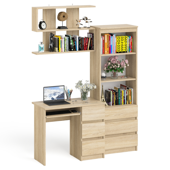 Отзывы о Столплит Рабочий стол Мори МС-6 правый с открытой полкой и стеллаж-комод МСТ600.3 Дуб Сонома
