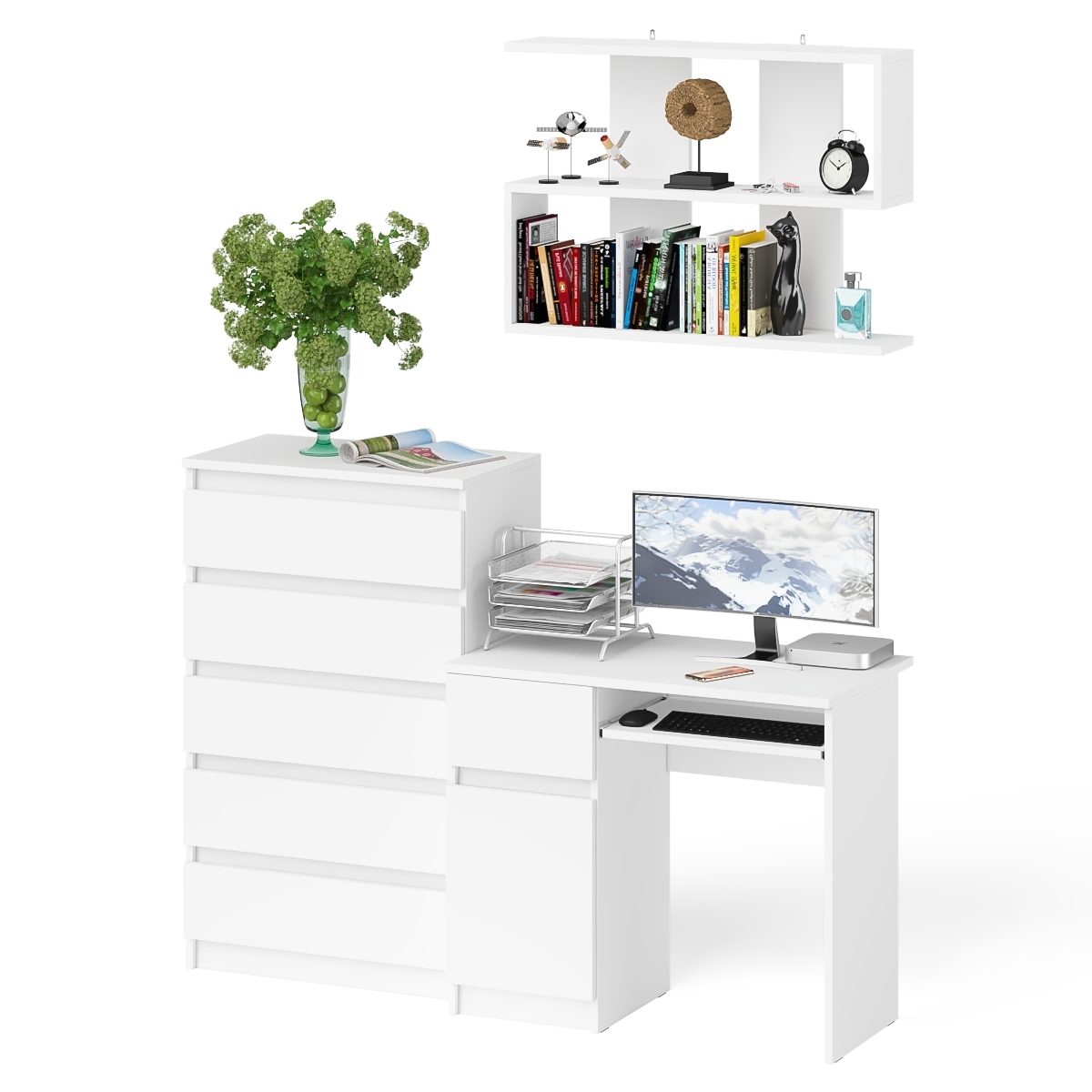 Стол компьютерный Мори с тумбой слева с высоким комодом МК700-5 и полкой 900 - минималистичный дизайн и доступная цена позволяет наслаждаться качественной и современной мебелью без значительных финансовых затрат!