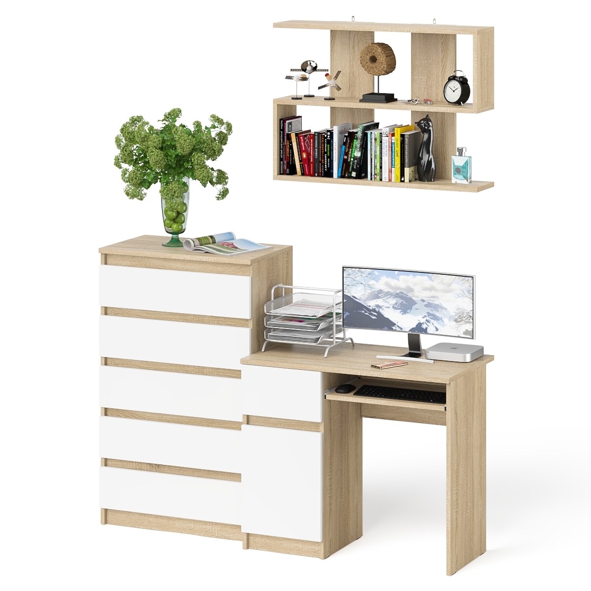 Отзывы о Столплит Стол компьютерный Мори с тумбой слева с высоким комодом МК700-5 и полкой 900 Дуб сонома светлый/Белый