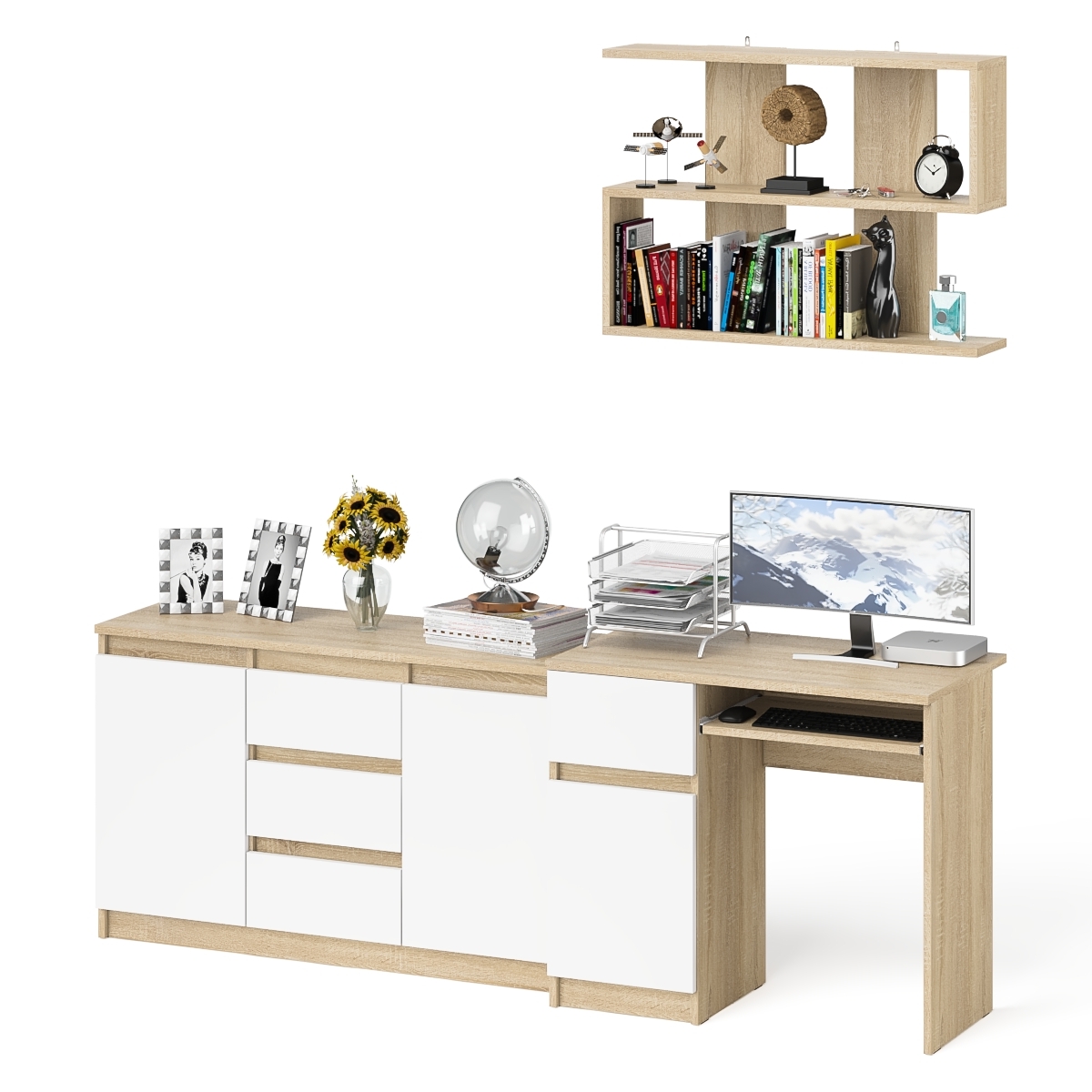 Стол компьютерный Мори МС-1 левый с верхней полкой и комодом с дверками и ящиками - минималистичный дизайн и доступная цена позволяет наслаждаться качественной и современной мебелью без значительных финансовых затрат!