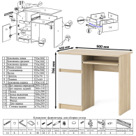 стола компьютерного - 90х50х76,6 см. Особенности: ящик слева, выдвижная полка для клавиатуры.