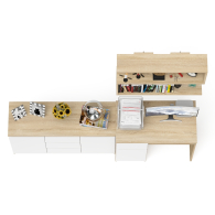 На нижних кромках опор предусмотрены пластиковые подпятники для защиты поверхности пола от механических повреждений. Поставляется в разобранном виде в надёжной упаковке, с комплектом сборочной фурнитуры и инструкцией по сборке.