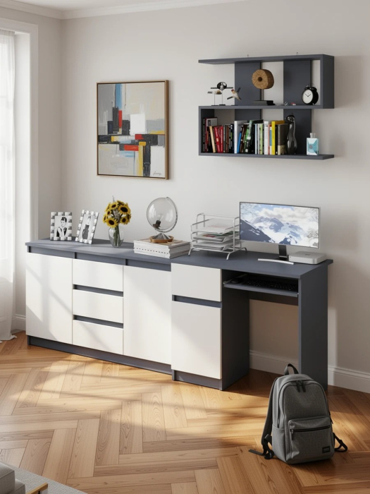 Выполнено в 5 цветах: белый, графит, графит/белый, дуб сонома и дуб сонома/белый.