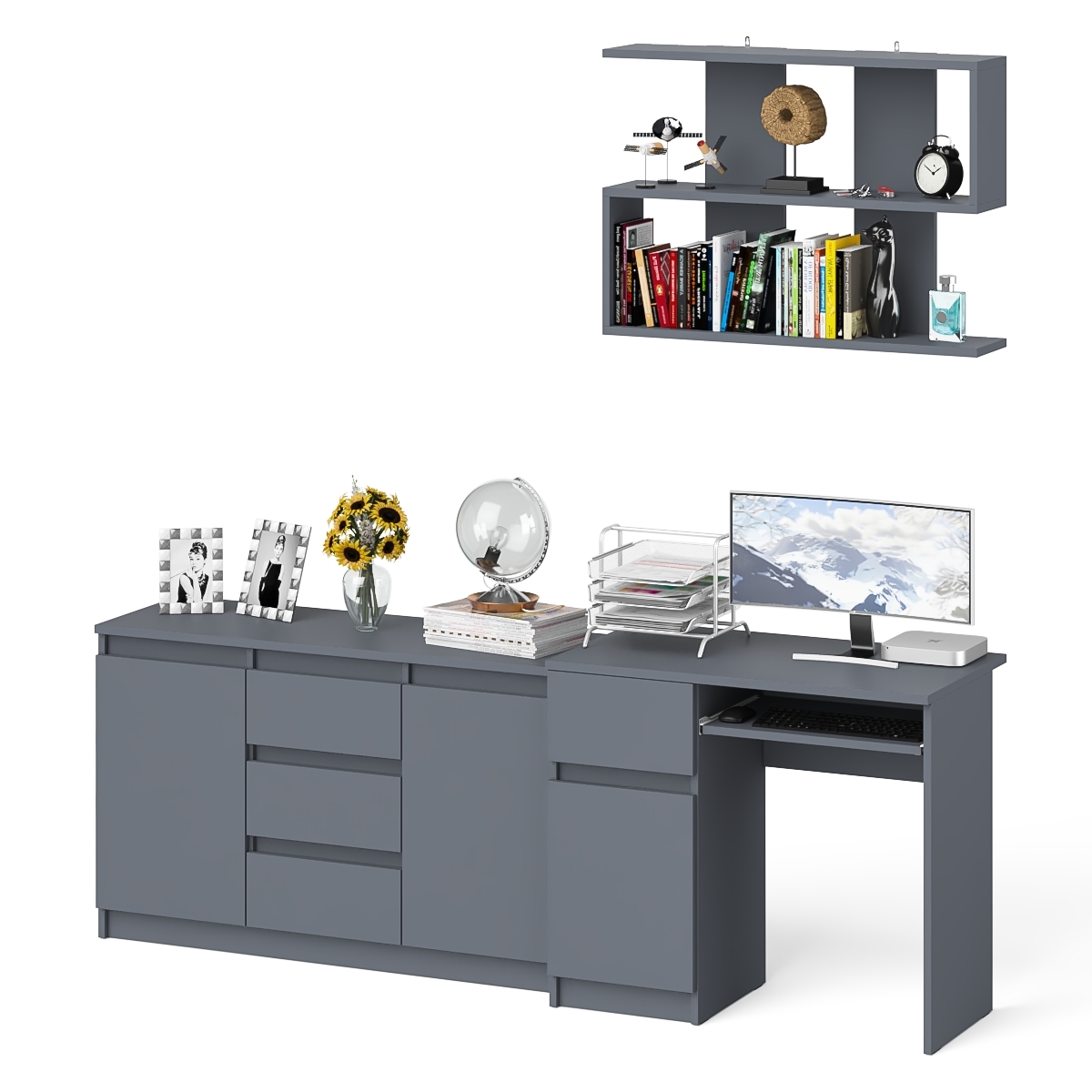 Отзывы о Столплит Стол компьютерный Мори МС-1 левый с верхней полкой и комодом с дверками и ящиками Графит