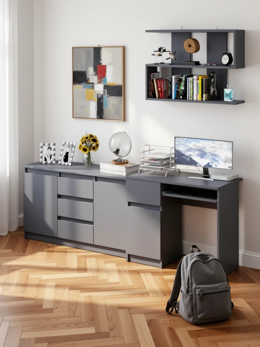 Выполнено в 5 цветах: белый, графит, графит/белый, дуб сонома и дуб сонома/белый.