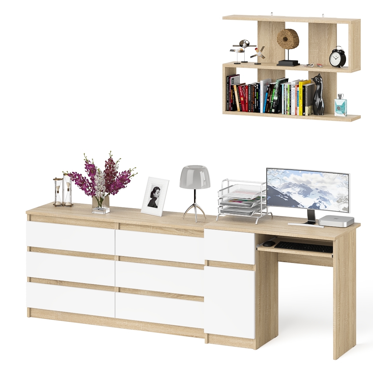 Отзывы о Столплит Компьютерный стол МС-1 левый с широким комодом МК1380-6 и полкой Мори 900 Дуб сонома светлый/Белый