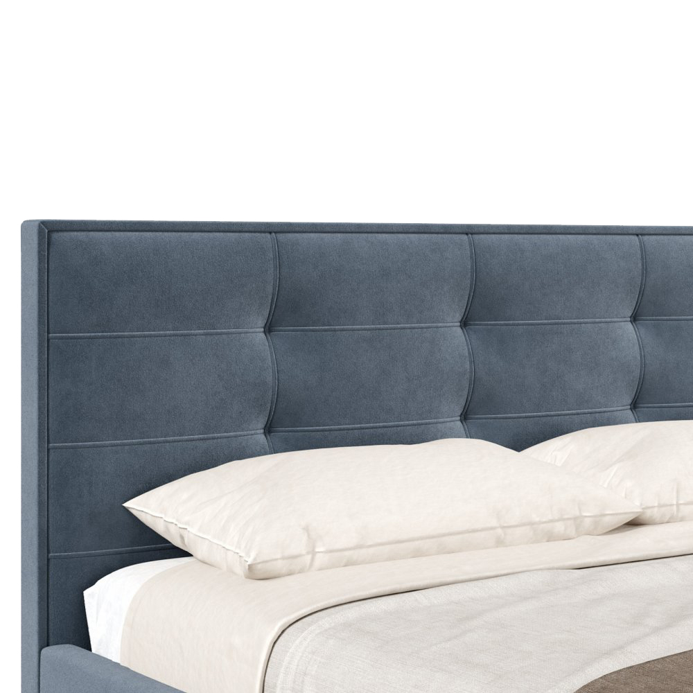 Изголовье и корпус кровати обтянуты велюром, приятным на ощупь и легко чистящимся.