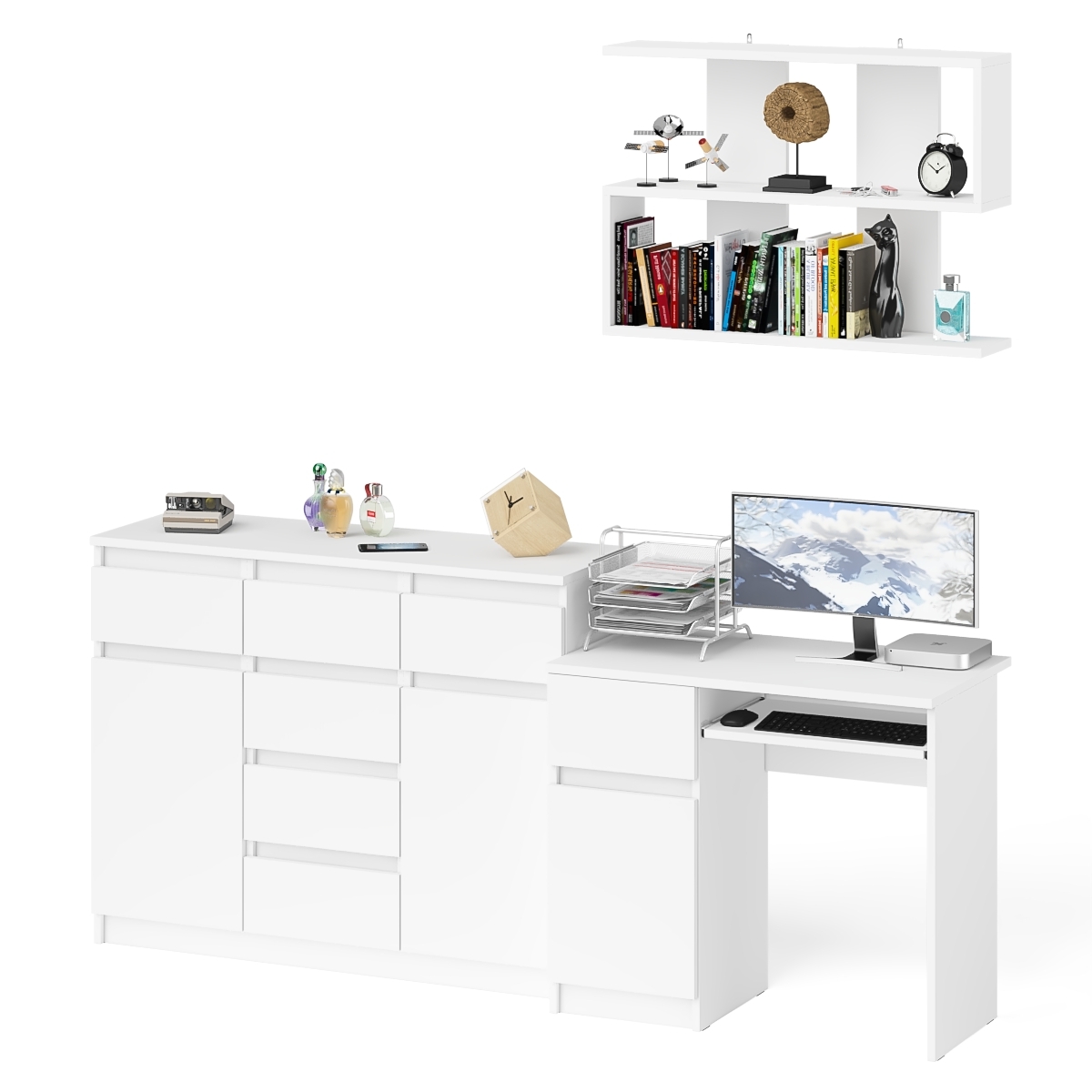 Навесная полка 900 Мори со столом компьютерным МС-1 левый и комодом МК1200.4 - минималистичный дизайн и доступная цена позволяет наслаждаться качественной и современной мебелью без значительных финансовых затрат!