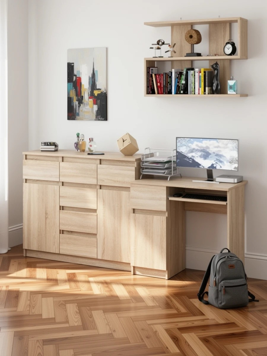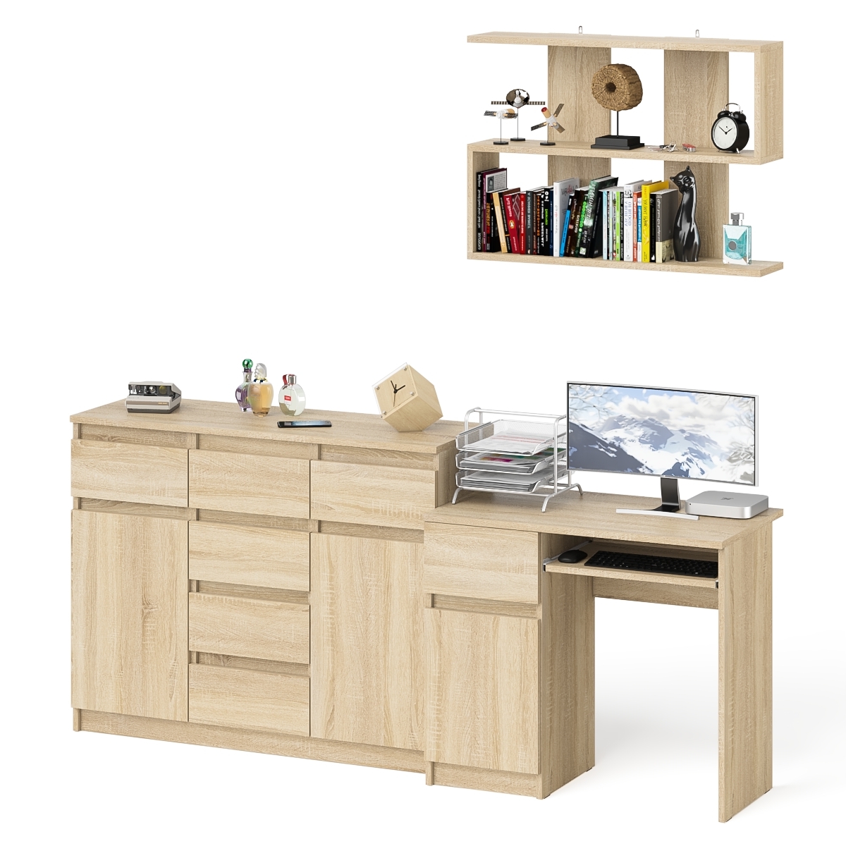 Отзывы о Столплит Навесная полка 900 Мори со столом компьютерным МС-1 левый и комодом МК1200.4 Дуб Сонома