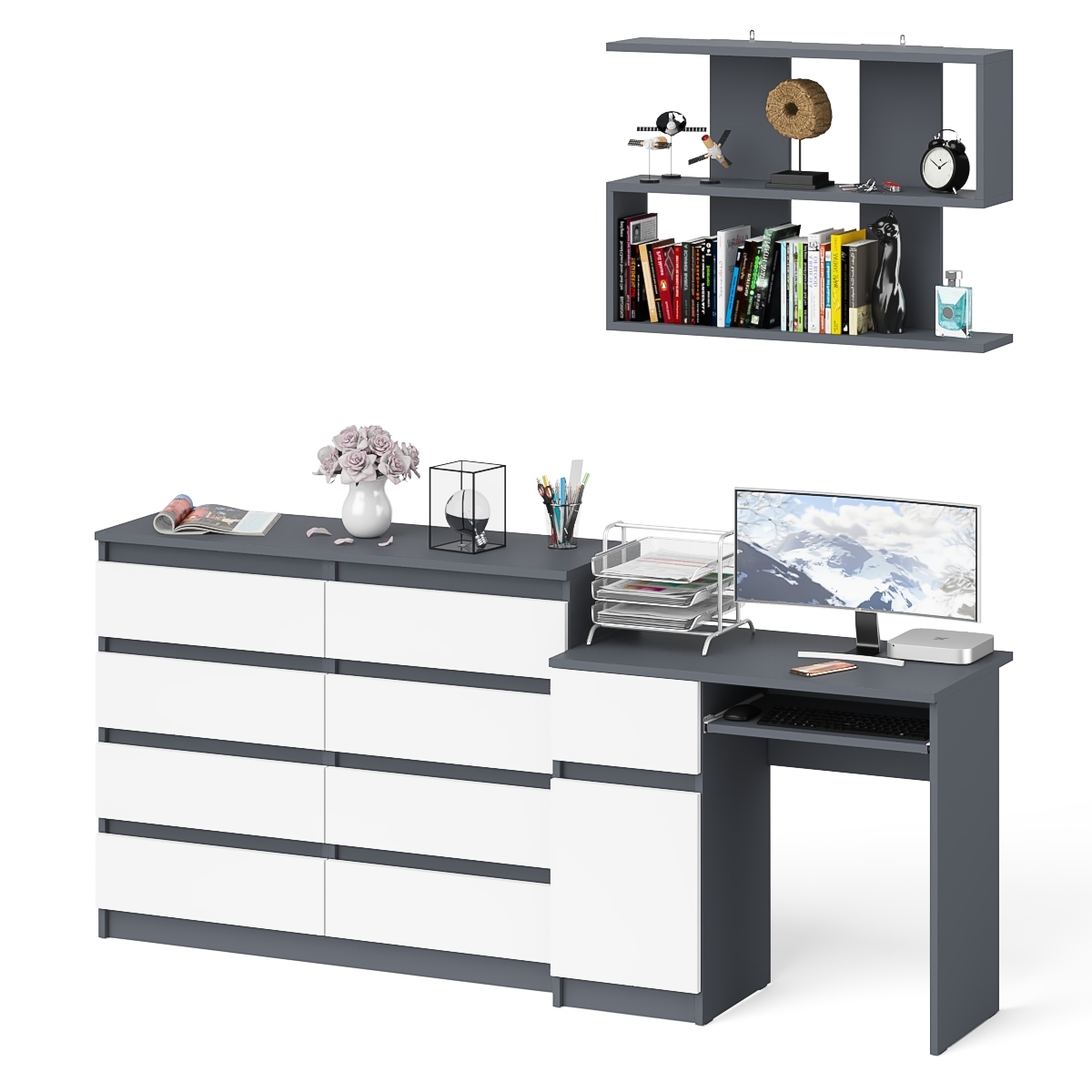 Отзывы о Столплит Комод на восемь ящиков МК1200.8 Мори с компьютерным столом МС-1 левый и верхней полкой 900 Графит/Белый