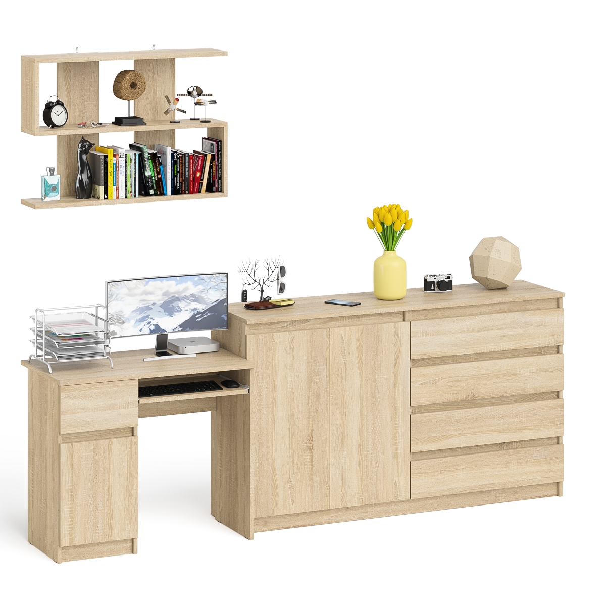 Отзывы о Столплит Стол компьютерный дверка и выдвижной ящик слева с комодом МК1600.1 и полкой Мори 900 Дуб Сонома