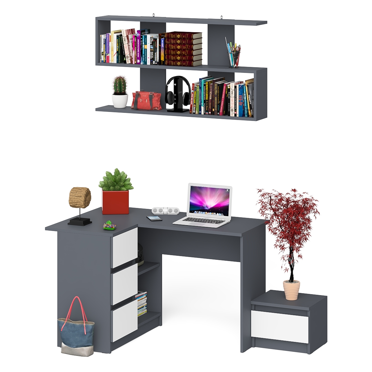 Отзывы о Столплит Угловой стол компьютерный Мори МС-16 левый с тумбочкой с ящиком 400 и полкой на 1200 Графит/Белый
