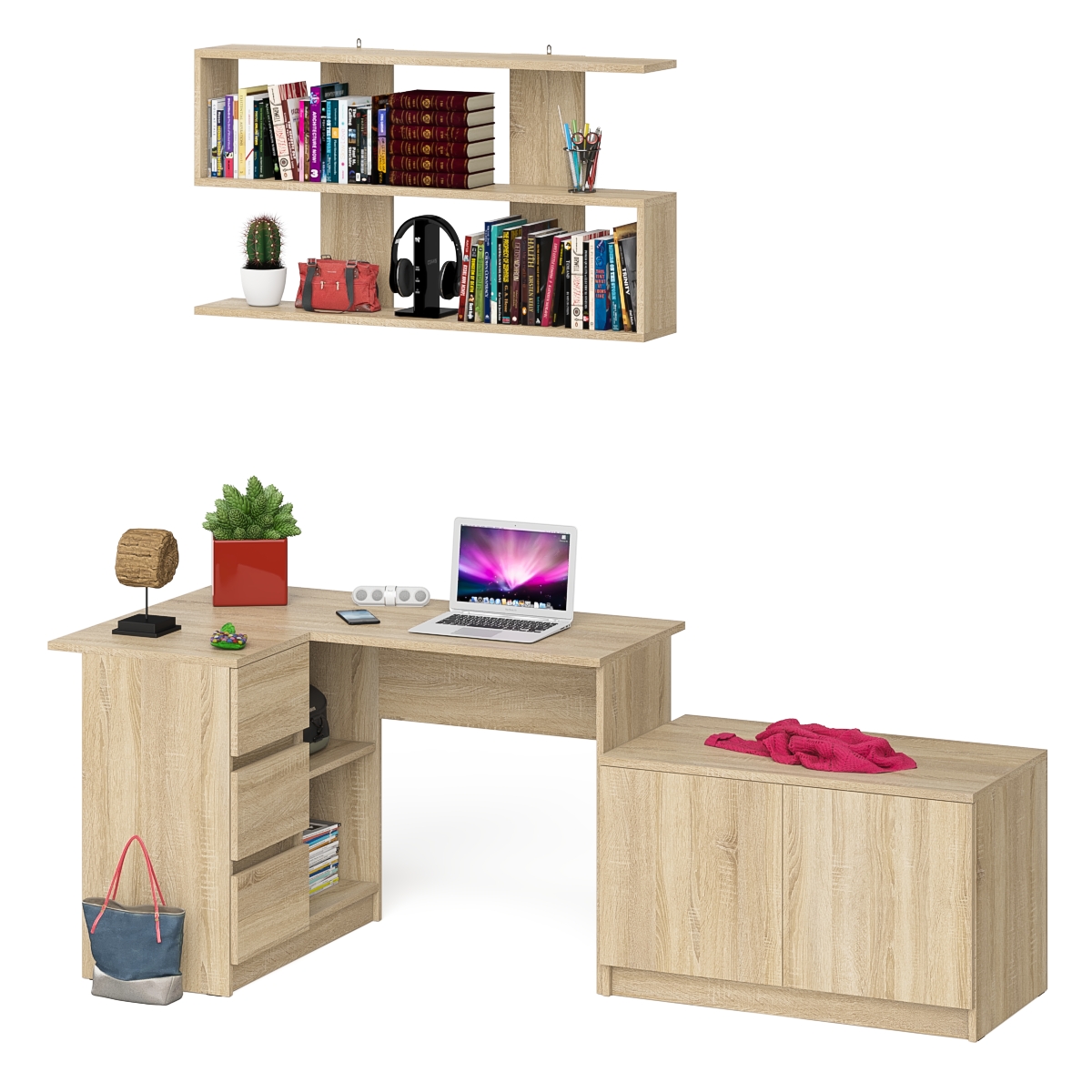 Отзывы о Столплит Угловой компьютерный стол Мори МС-16 левый с тумбой две двери МА900.1 и широкой полкой 1200 Дуб Сонома