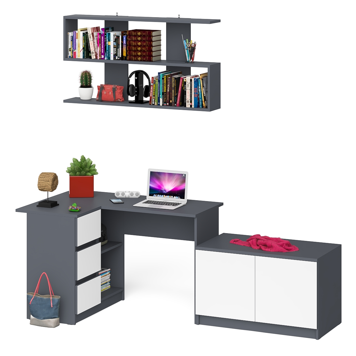 Выполнено в 5 цветах: белый, графит, графит/белый, дуб сонома и дуб сонома/белый.