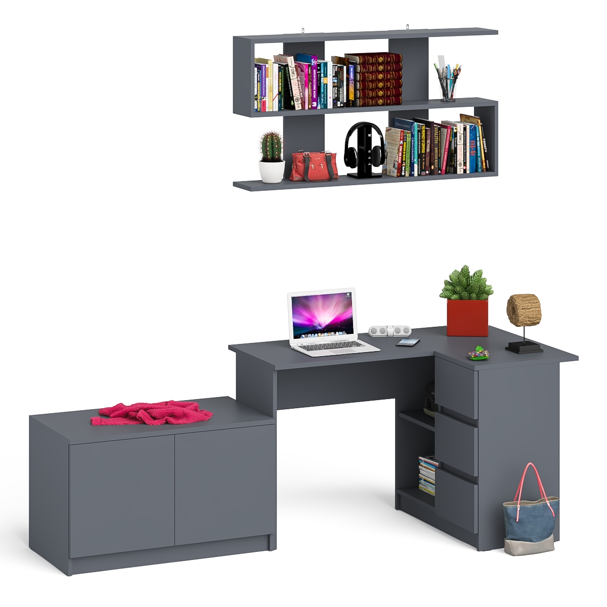 Отзывы о Столплит Компьютерный угловой стол Мори МС-16 правый с открытой полкой на 1200 и 2-х дверной тумбочкой Графит