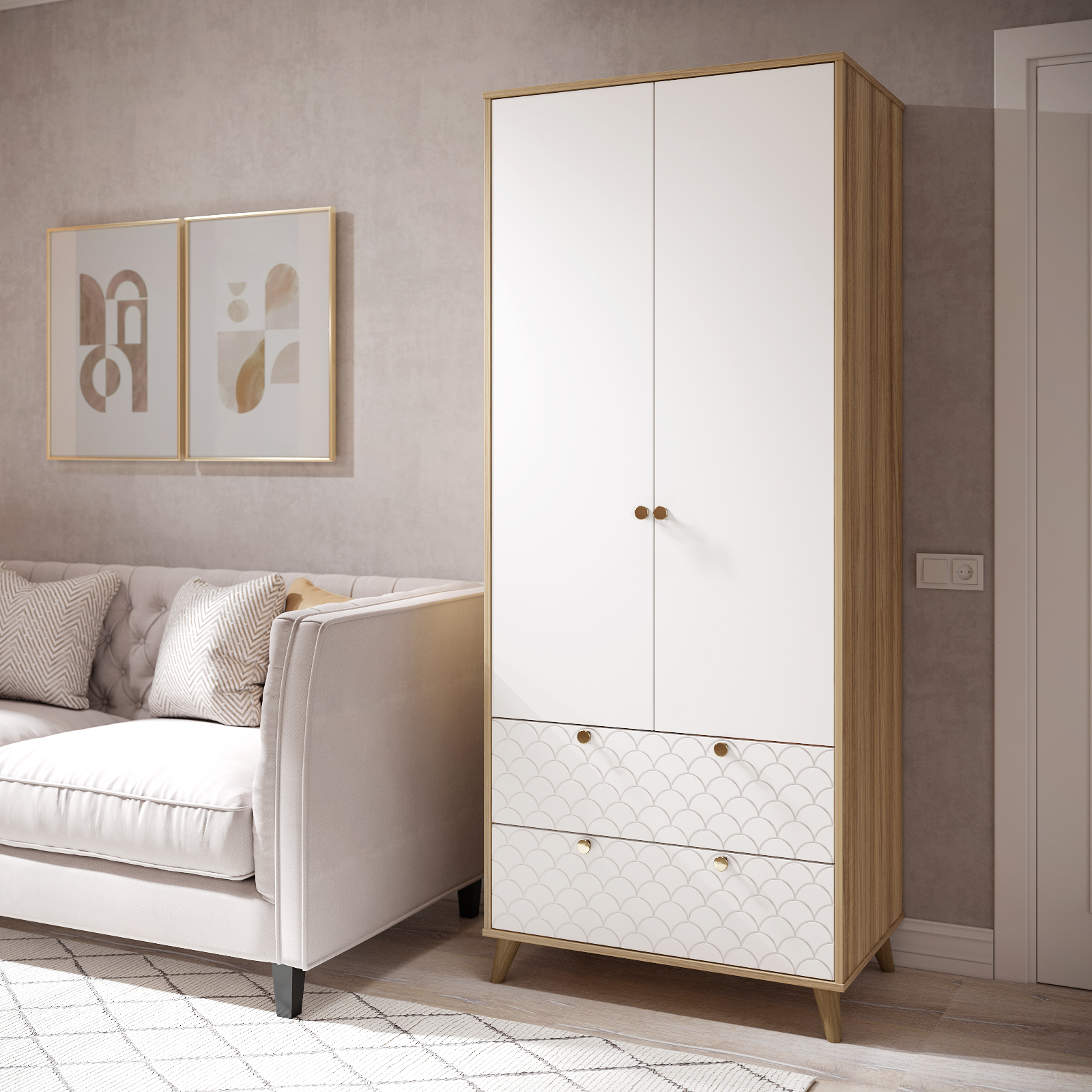 Шкаф Велламо ВО-07 станет функциональным и стильным дополнением гостиной комнаты или спальни. Высота опоры 120 мм. Фурнитура: петли с доводчиками, ручки металл, телескопические направляющие полного выдвижения без доводчиков, опоры деревянные.
