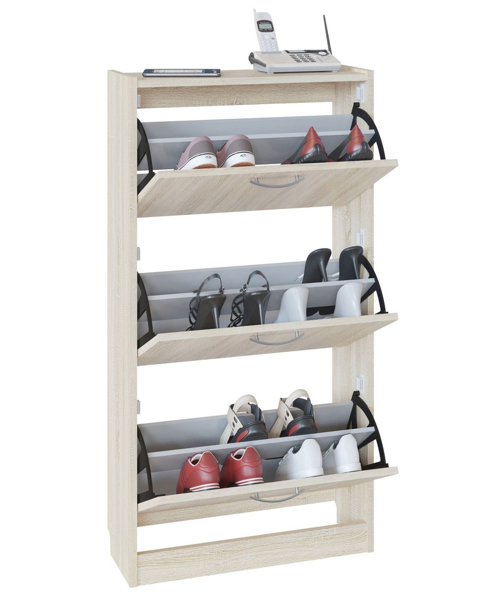 Обувница ТО-23 - самая оптимальная модель для небольших и узких прихожих. В зависимости от обуви, каждое отделение может разместить до 8 пар обуви. Для устойчивости, обувницу рекомендуется крепить к стене. Фурнитура входит в комплект.