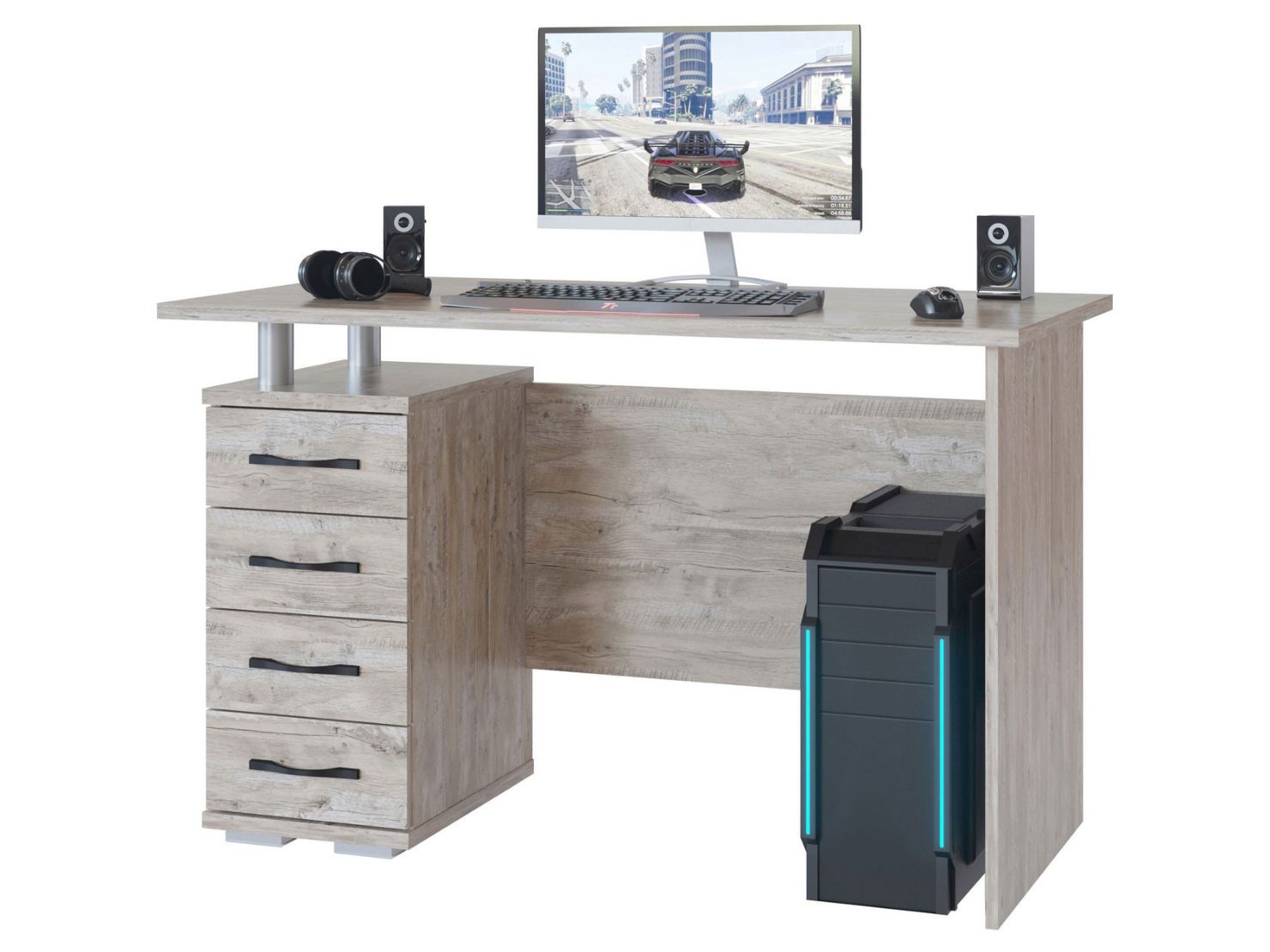 Удобный большой стол со встроенной вместительной тумбой. Строгие и лаконичные формы будут прекрасно смотреться в современном интерьере. Тумба имеет 4 ящика и нишу сверху. Стол универсален по функционалу и может быть использован как письменный и как компьютерный. Внутренний размер ящиков составляет — 223 х 370 мм. Глубина ящика 81 мм. Направляющие роликовые.