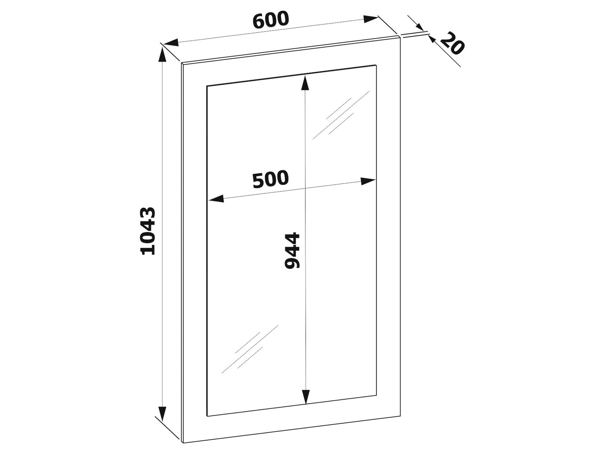 Размер В-1043 мм, Ш-600 мм, Г-20 мм