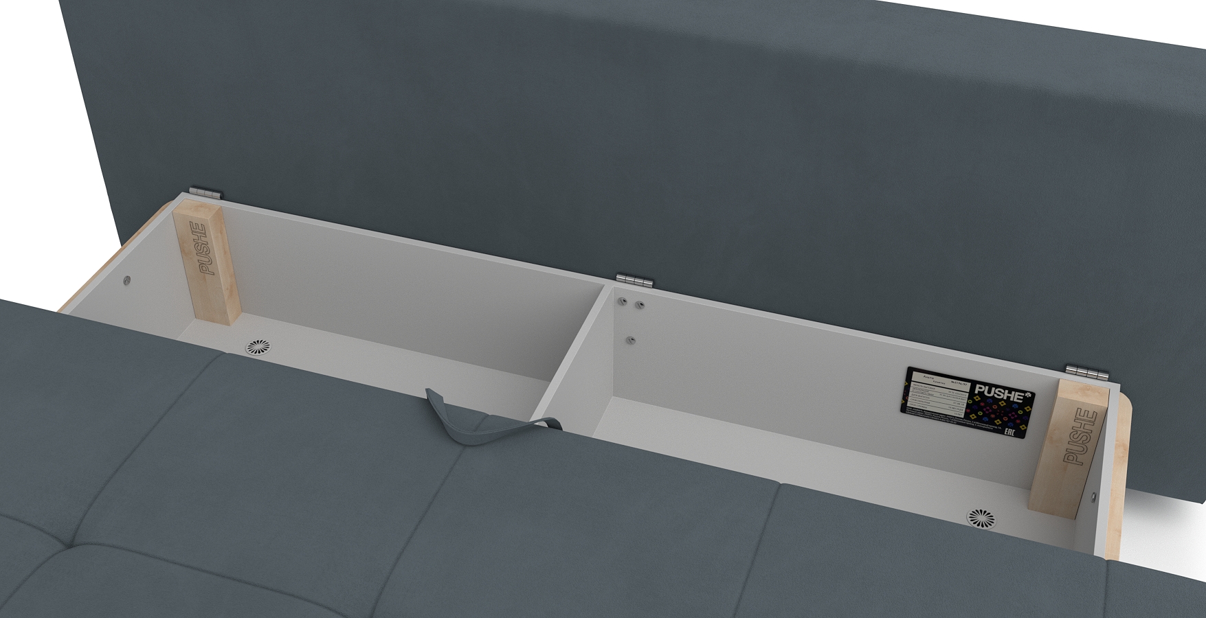 : диван с подобным механизмом занимает совсем мало места, может стоять как у стены, так и в середине комнаты;