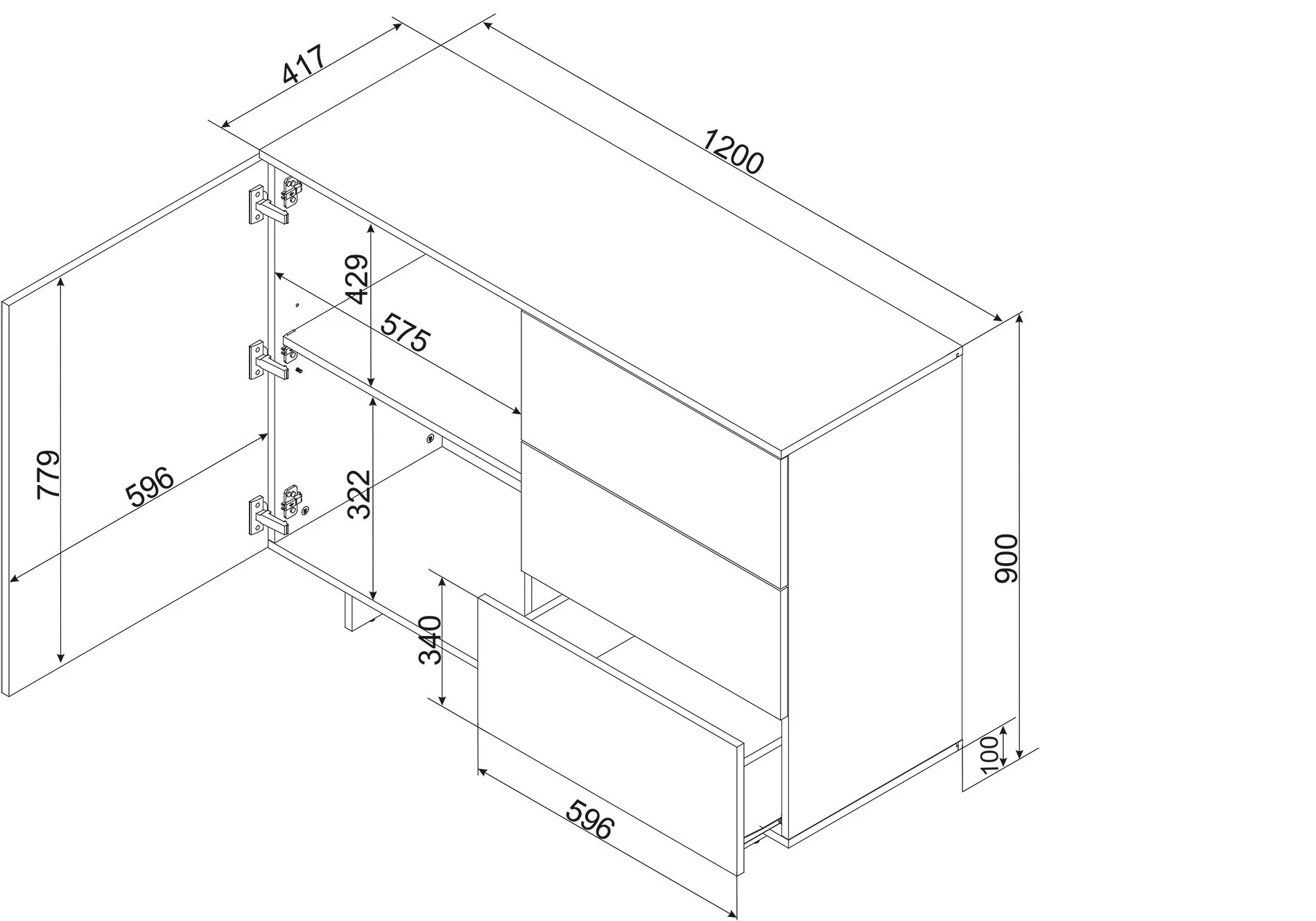 Ш 120 X В 90 X Г 42 см