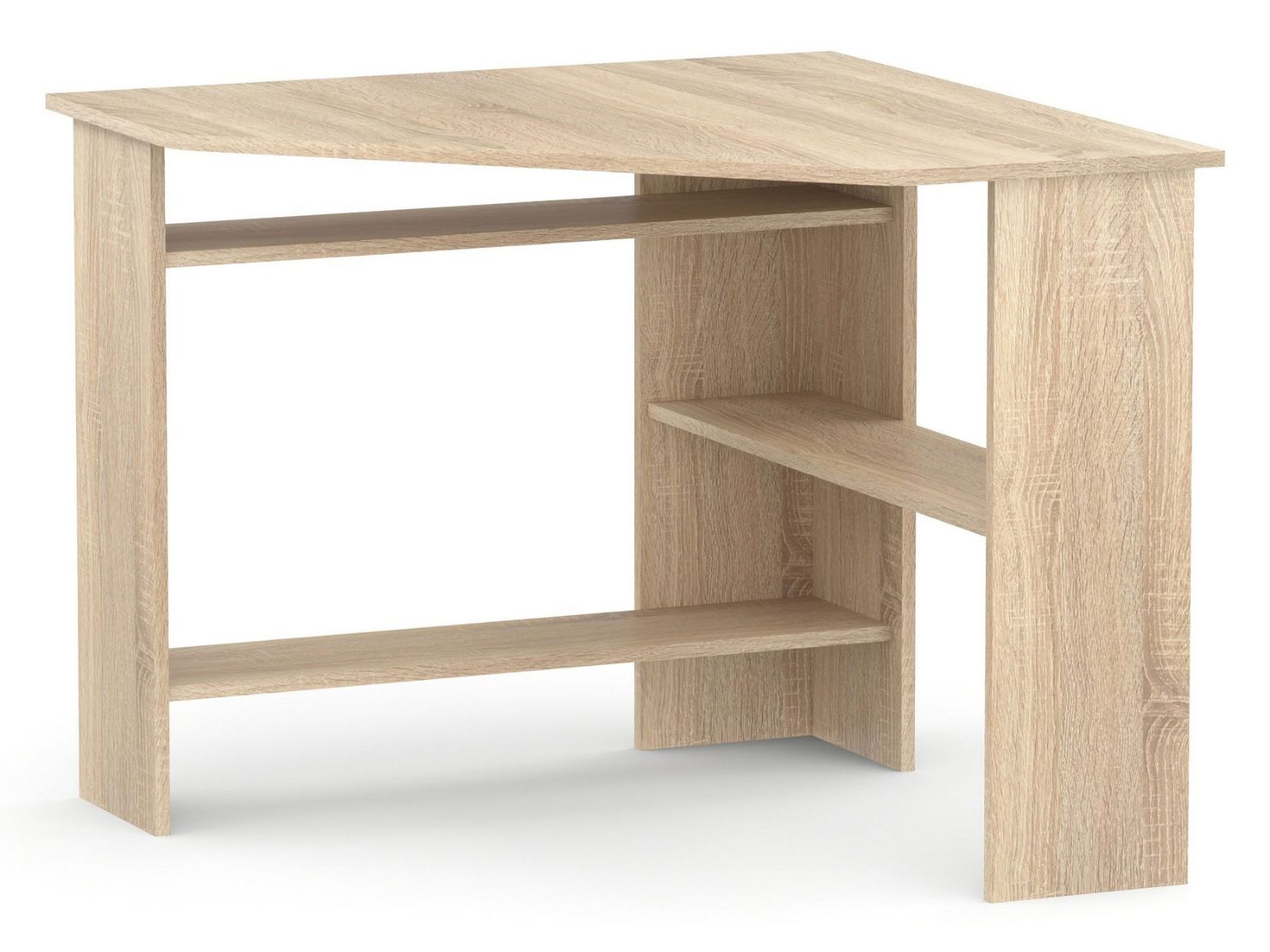 Угловой компьютерный стол КСТ-02 — функциональный вариант обустройства полноценной рабочей или учебной зоны. Просторная столешница разместит монитор или ноутбук, а также всё то, что необходимо держать под рукой для быстрого доступа. Несколько разноплановых полок станут удобной системой хранения книг, бумаг и прочей канцелярии.