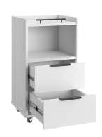 Тумба К-30 подойдет для бизнеса, салонов красоты. Можно использовать как тележку-этажерку, тумбочку косметологическую, парикмахерскую, для массажиста, мастера по маникюру, педикюру, шугарингу, наращивания ресниц. Тумба оснащена полкой и 2-мя выдвижными ящиками для различных мелочей.