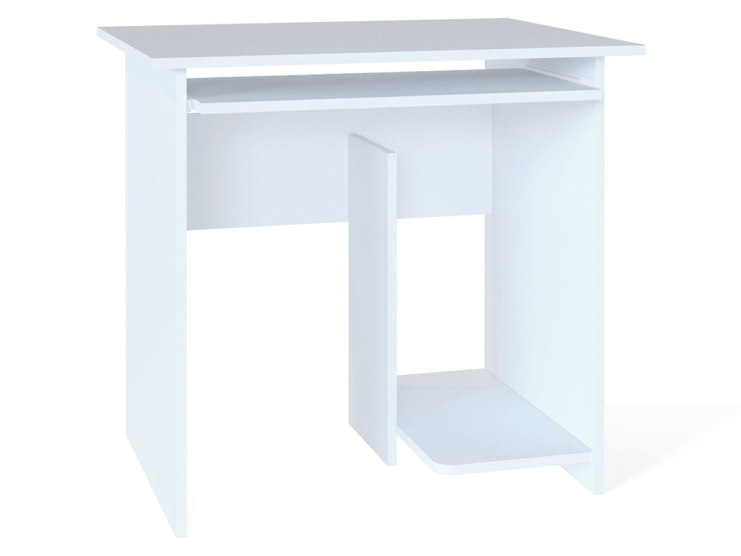 Размеры столешницы — 800 х 600 мм — позволяют установить монитор любой диагонали. Стол оборудован выдвижной полкой для клавиатуры, а в основании с правой стороны расположена ниша под системный блок.
