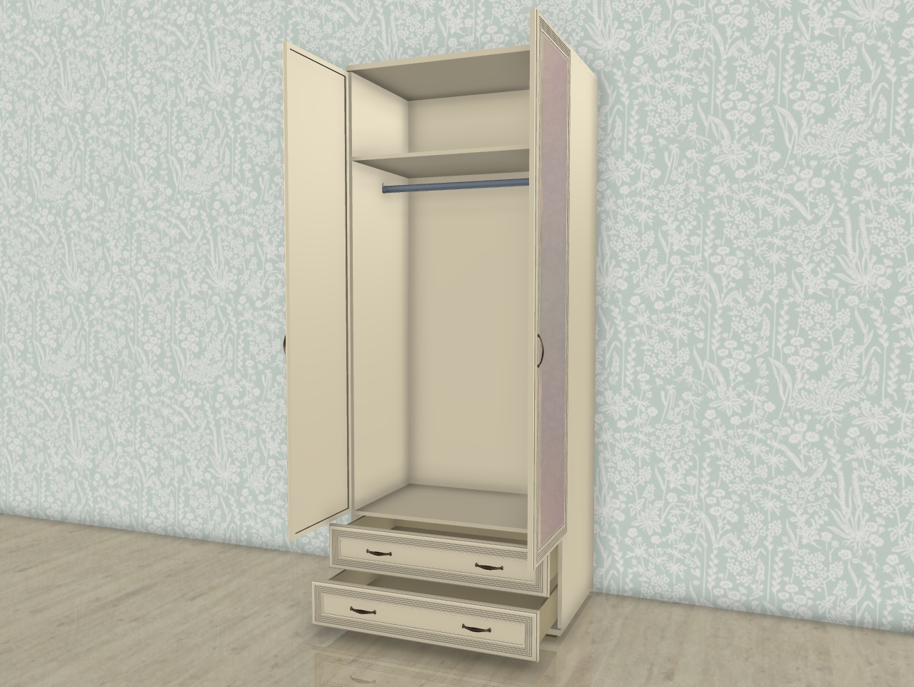 МС Карина шкаф для одежды ШК-1007 прямой 2-дверный с 2 ящиками с зеркалом.