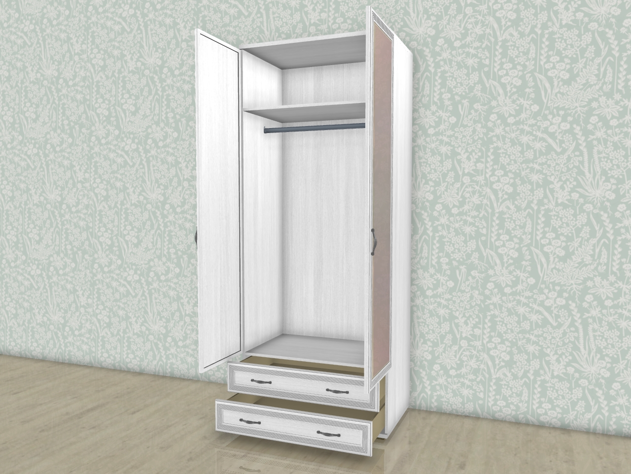 МС Карина шкаф для одежды ШК-1007 прямой 2-дверный с 2 ящиками с зеркалом.